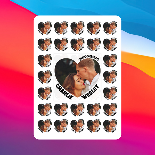 Tatouages Temporaires Personnalisés en Forme de Cœur - Mariage, Union, EVJF, EVG (Lot de 35)